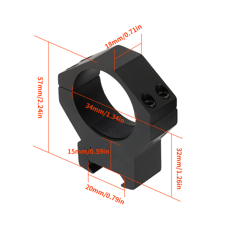 Designed to mount on most scopes which are in 1.34 in/34mm scope tube.