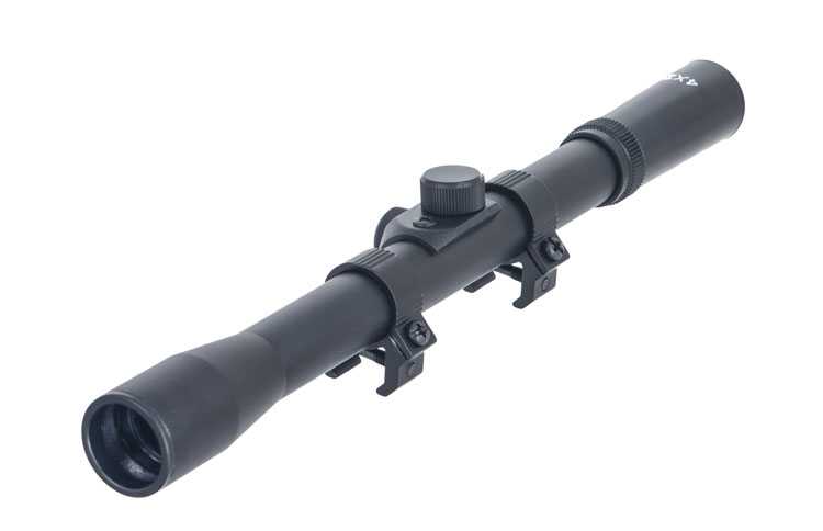 This is a full sized scope with 0.75” body tube that is best suited for an adult airgun or rimfire rifle. Includes Ring Mounts for .22 / Air Rifles with Grooved Receivers, Fully Adjusteable Windage and Elevation, Lens Covers.