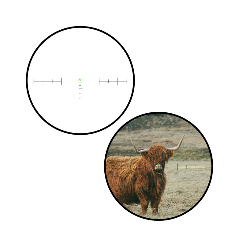 Unique reticle provides a fast target acquisition at close ranges while providing enhanced target identification.