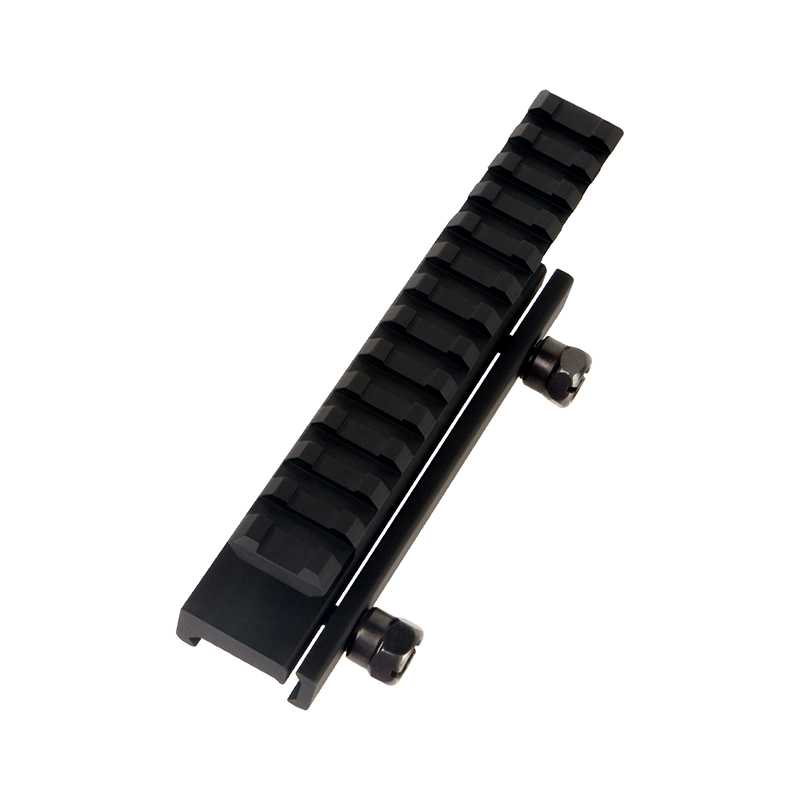 The riser is 5.50 inches in length with 13 Picatinny rail slots. It accepts all Picatinny or Weaver based scopes, red dots, or optics.