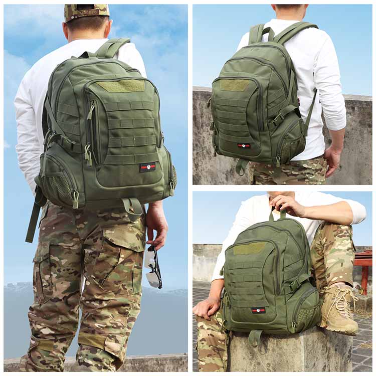 This multifunction outdoor tactical backpack with spacious compartments is made of durable 1000D Cordura nylon fabric.