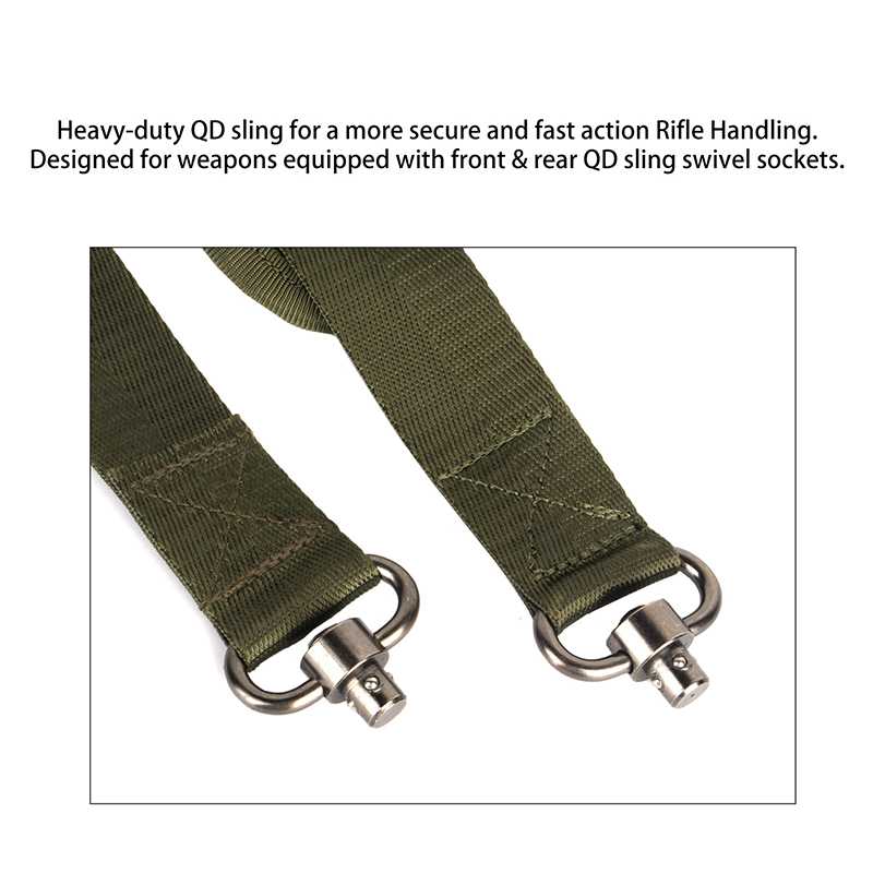 Heavy-duty QD sling attaches easily to the QD mounting points and ensures a more secure and fast action Rifle Handling.