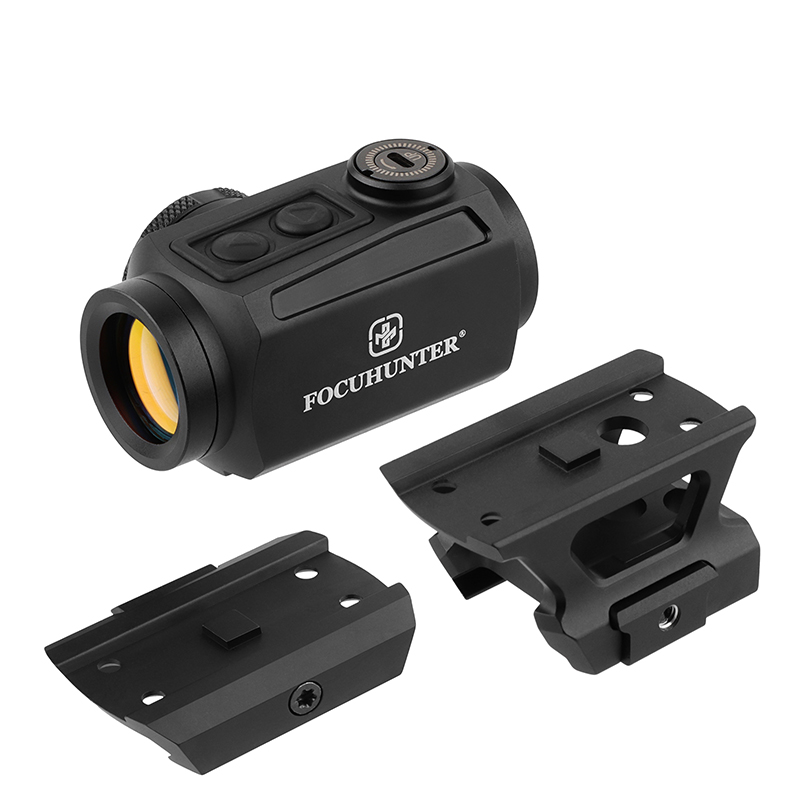 The FOCUHUNTER is equipped with a clear 3 MOA dot in either red and 10 manual illumination settings, FOCUHUNTER stays at the ready longer with a lateral-mounted CR2032 battery and Shake F' Wake auto on/off. Brightness settings 1 and 2 are night vision-compatible with settings 3 to 8 for low-light and indoor applications, leaving settings 9 and 10 ideal for daylight shooting.