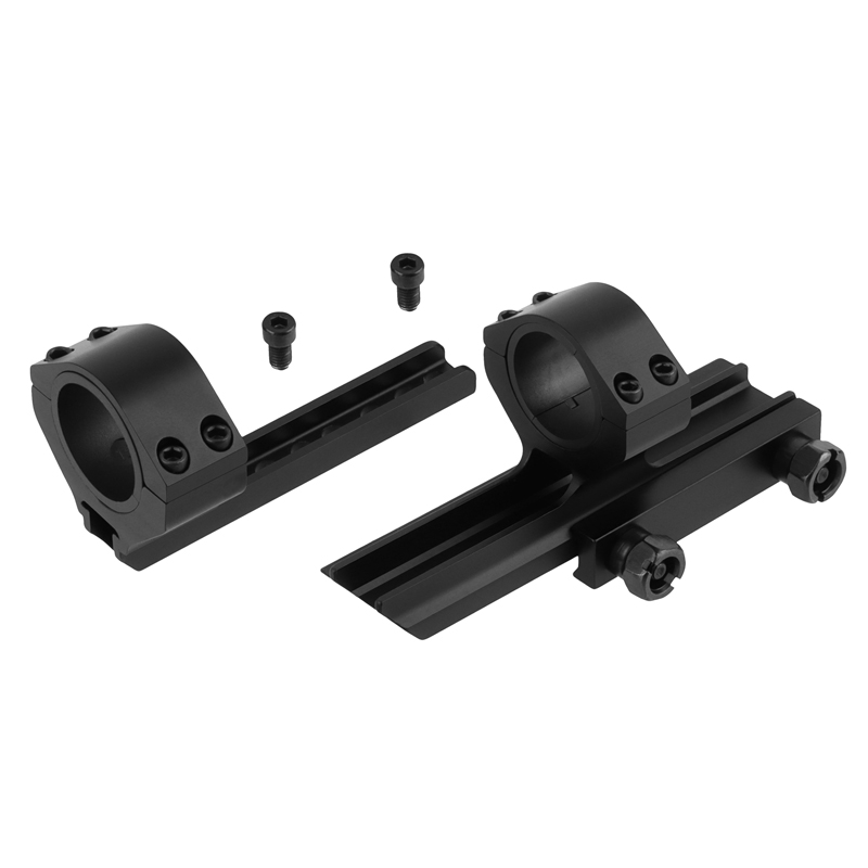 Specifications Item No: MZJ-MOT-0144 ColorBlack FinishMatte Material Aluminum Fabric/Material:6063 Aluminum Base/Mount Type Cantilever Locking Mechanism: (Mount to Rifle) Thumbscrews Item Package Dimensions L x W x H15x7x5cm /6x2.6x2 inches Package Weight234g / 8Oz Item Weight200g / 7Oz COMPATIBILITY: 1‘' and 30mm Tube