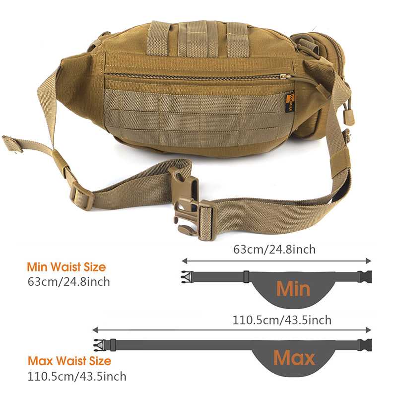 [ABS Buckle & Smooth Zipper] - Tactical waist pack's strap adopt ABS buckle to connect.Solid and sturdy. Zipper are a very important component of a bag and should never be compromised.Once a zipper fails, a bag might become useless. Our bag have very sturdy zippers and operates smoothly. Make waist bag to perform over a long period time.