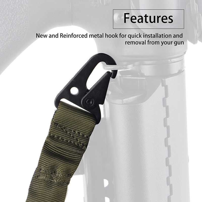 2 special clasps that feature a hole allows them to be connected by the hook to convert it from a 2 Point Sling to a 1 Point Sling.